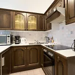 A number of in-room facilities, including a TV set, are featured in a balcony and a seating area. The apartment is also furnished with a sofa. A bathroom has a bathtub and a separate toilet, as well as a hair dryer and bath sheets.